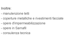 Eseguiamo lavori di lattoneria e coperture, manutenzioni ordinarie e straordinarie per case singole, condomini o impianti industriali.